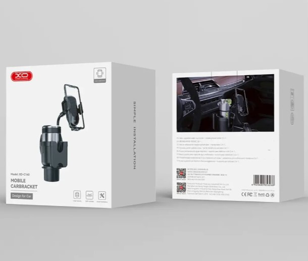 Тримач для смартфона XO C140 встановлюється в підсклянник автомобіля. Завдяки гнучкій конструкції можна його легко розгорнути, тому аксесуари можуть використовувати як водій, так і пасажир. У підсклянці є додаткова секція телефону.